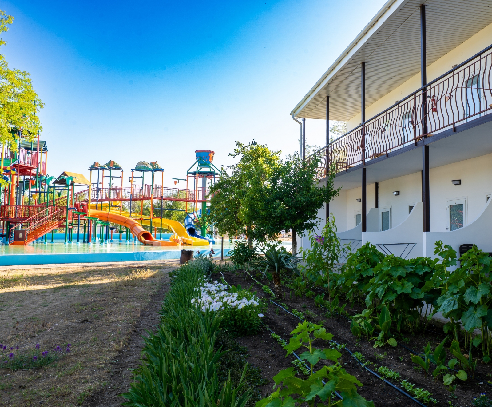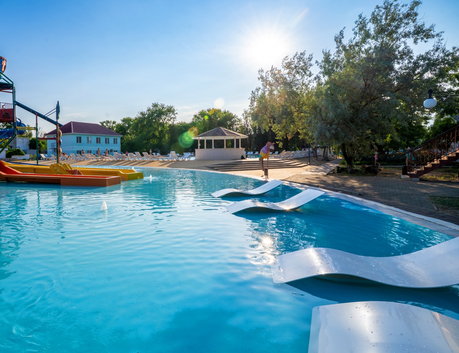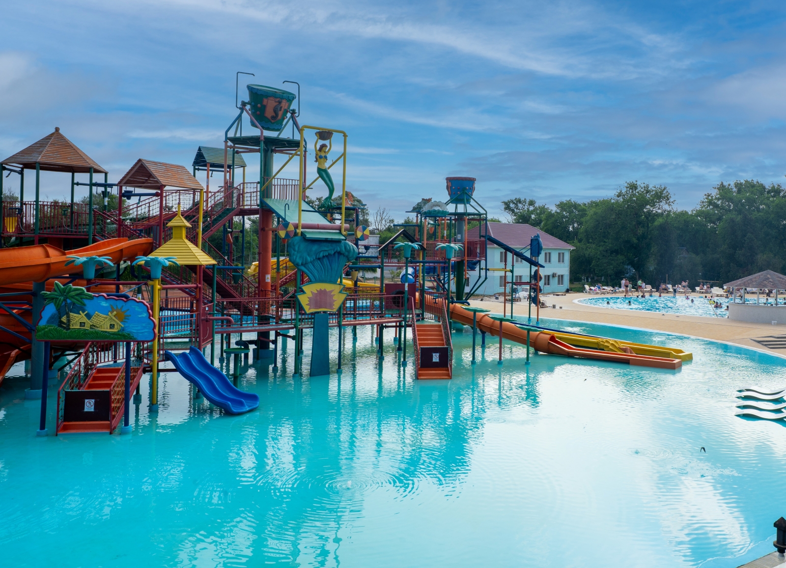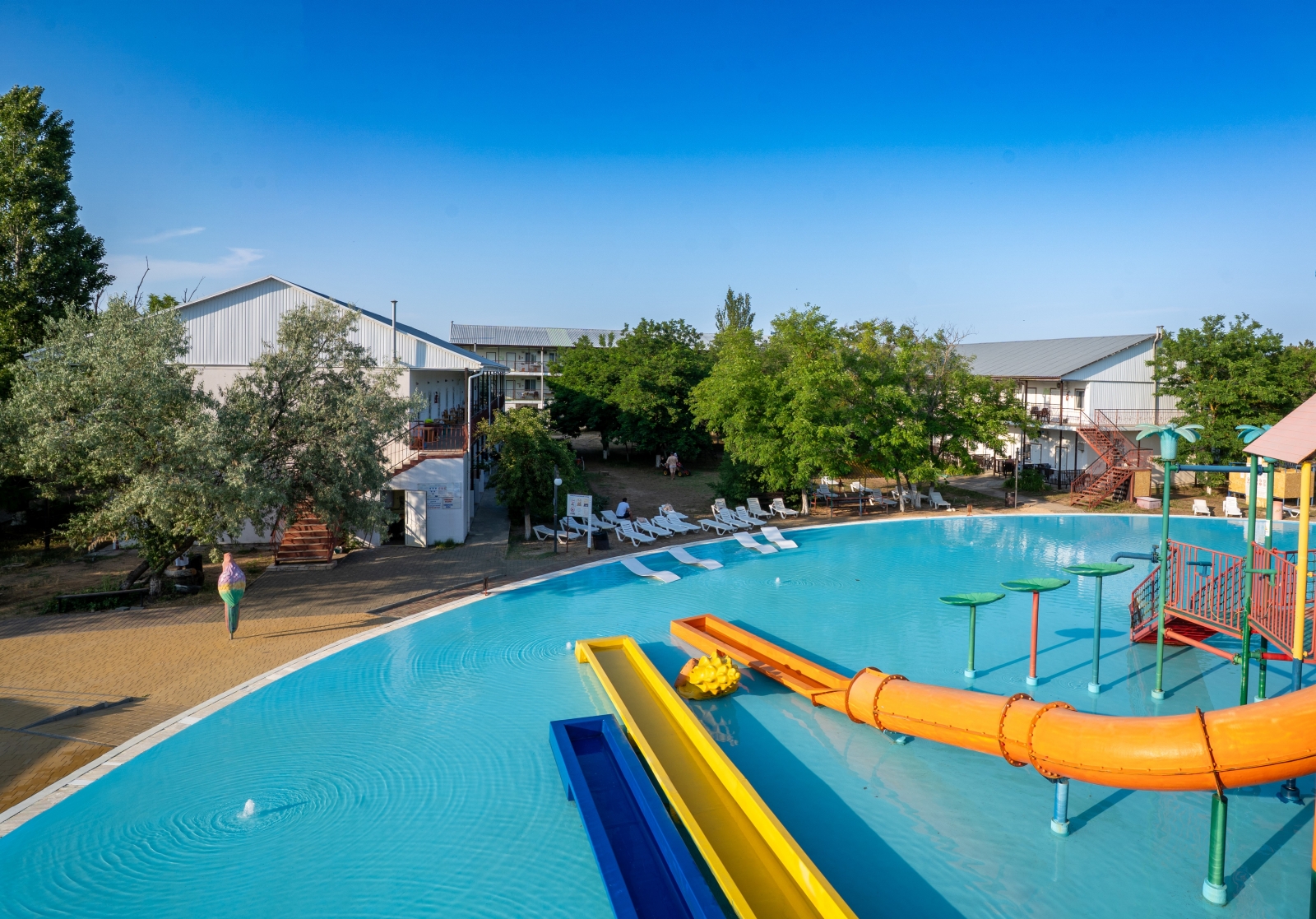 - Детский аквапарк с подогревом воды (работает по погодным условиям)