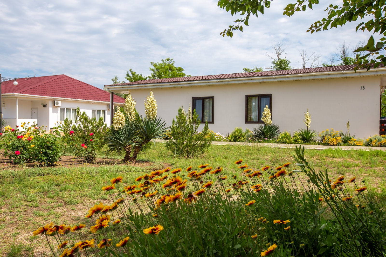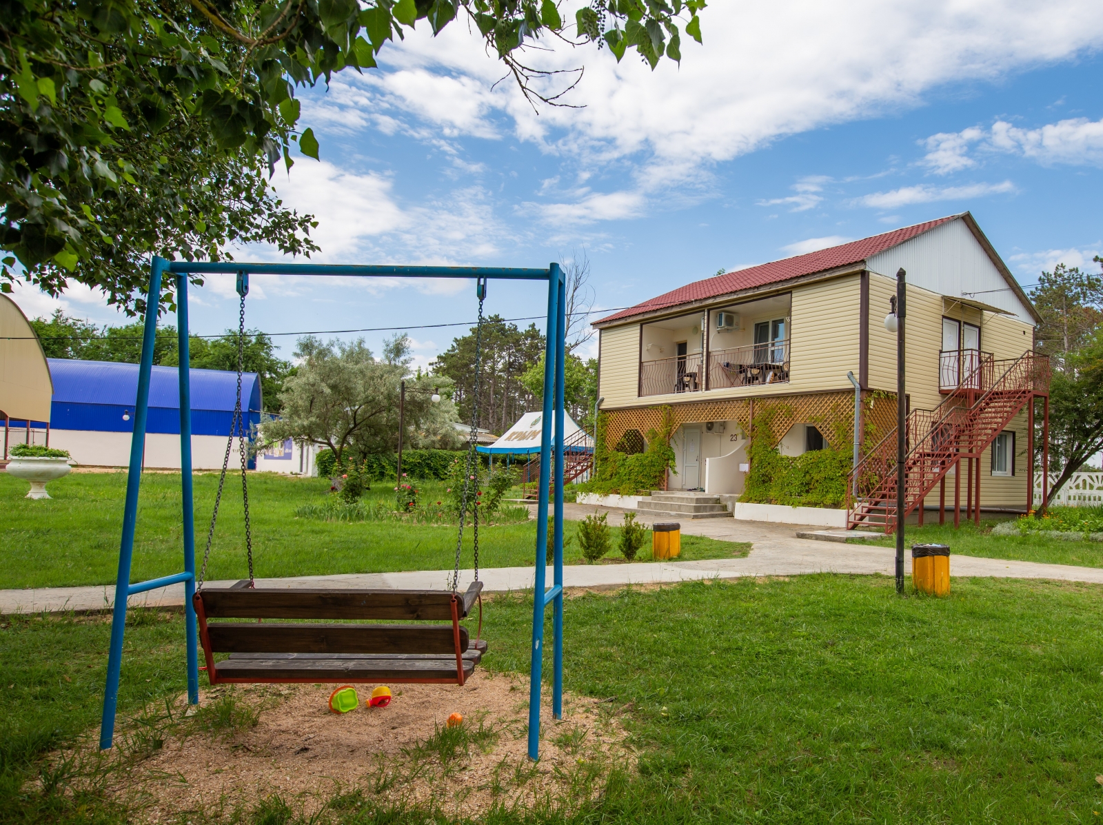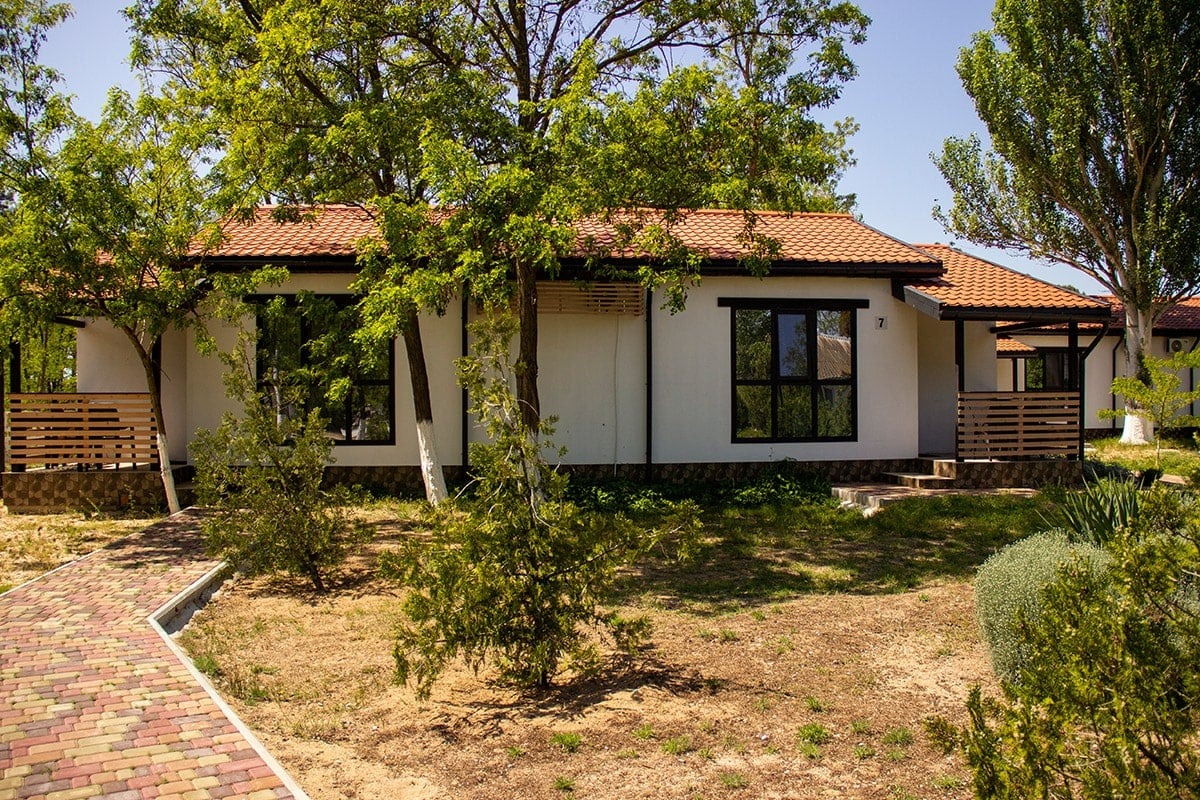 Курортный комплекс «Азовский» предлагает семейный отдых с детьми по системе «всё включено» и занимает территорию площадью 6,5 гектаров, на которой разместилось 25 корпусов в один, два и три этажа. Обширный жилой фонд, рассчитанный на 750 человек, предлагает гостям номера разной категории — от простых Стандартов до просторных Апартаментов и Делюксов. В комнатах современный светлый интерьер, везде есть санузел с душем, плазменный телевизор и другая бытовая техника, в некоторых номерах предусмотрены кондиционеры. На территории работают столовая и летнее кафе.