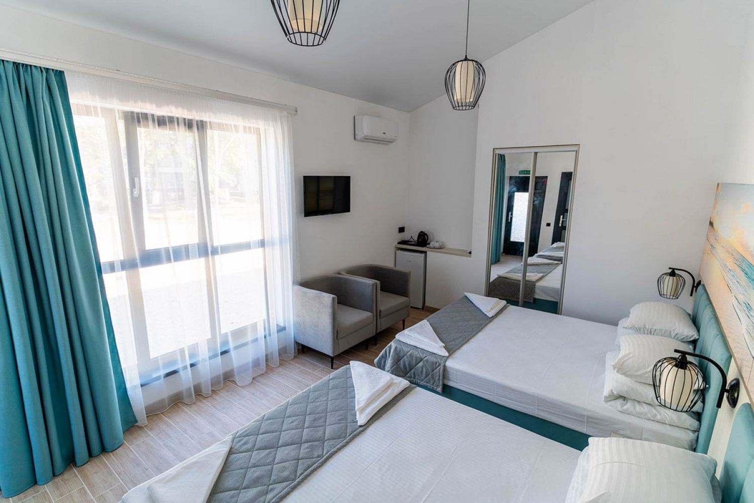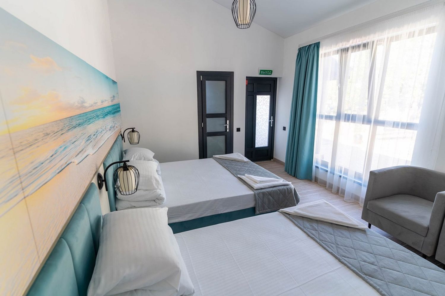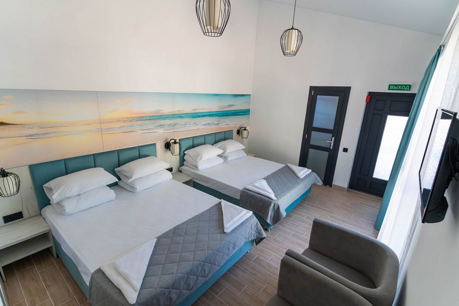 Вместимость: до 4 человек; Преимущества: Авторский дизайн номера, Сейф с кодовым замком, Плазменный телевизор, Веранда, Веранда / балкон, 1 этаж, Месторасположение, Близость к морю; Удобства и услуги: Плазменный телевизор, Кондиционер, Шкаф, Душ, Белье, Полотенца, Кровати с ортопедическими матрасами, Чайник электрический, Фен, Холодильник, Сейф с кодовым замком, Зеркало